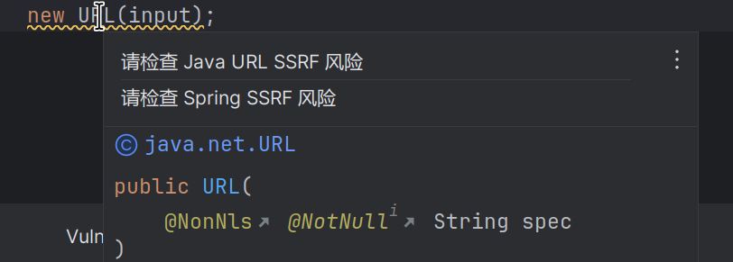 安装插件后,编写代码的过程中会实时产生warning来提示检查是否存在某种风险: