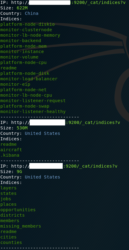 root@kali:~/# python leaklooker.py --mongodb --couchdb --kibana --elastic --first 12 --last 14