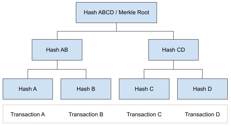 Let's say we have 4 transactions: "Transaction A", B, C, and D. All of them are executed in the same block. Each of these transactions is going to get hashed. Let's call those hashes "Hash A", B, C, and D respectively.
