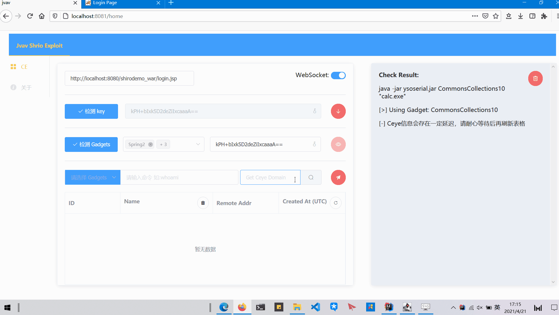 对Shiro550 进行检测与利用,dnslog 基于 Ceye 。