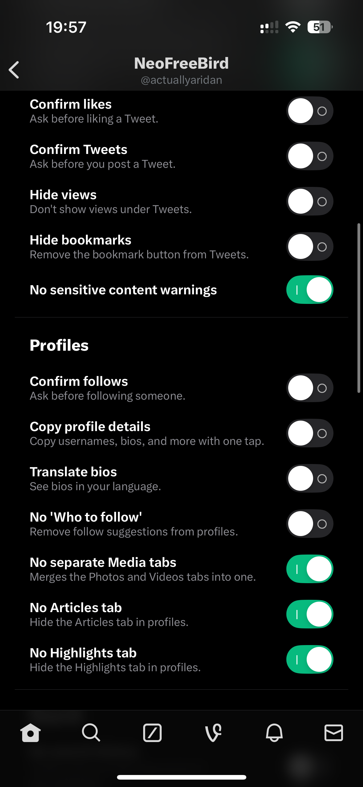 NeoFreeBird uses a modern app version with various changes such as branding reverts, removal of unnecessary features, along with our own fork of BHTwitter for blocking ads, getting various Twitter Blue features for free and being able to customize Twitter in various ways. Theres tons of new features to try!