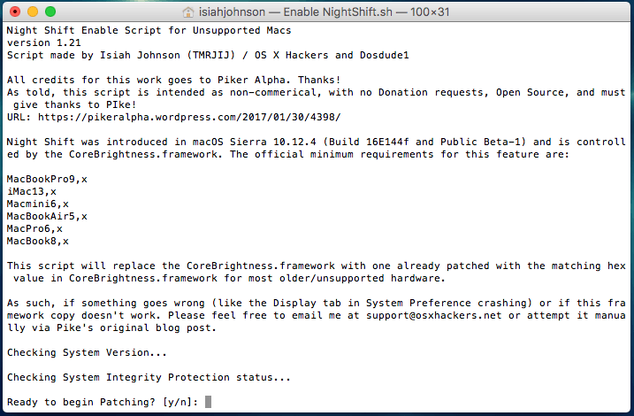 Night Shift Enable Script for Unsupported Macs Script made by Isiah Johnson (TMRJIJ) / OS X Hackers & Dosdude1