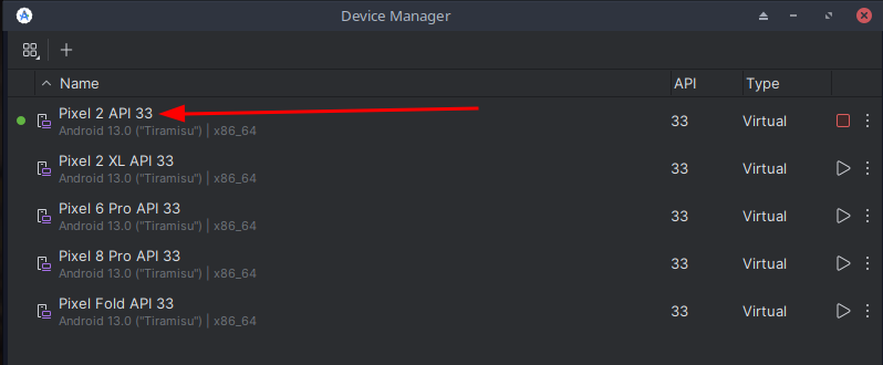 - Android SDK Platform => Android 13.0 ("Tiramisu") API Level 33