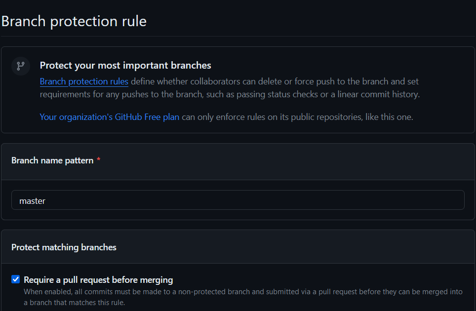 - Require a pull request before merging