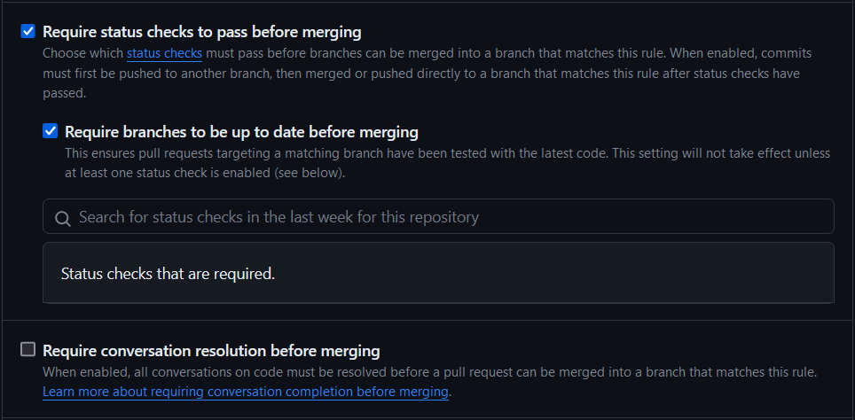 - Require status checks to pass before merging