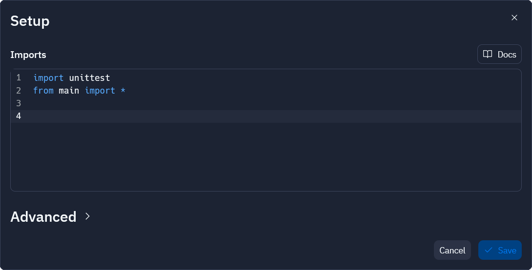 First you need to set up unit tests. In a setup window add required imports.