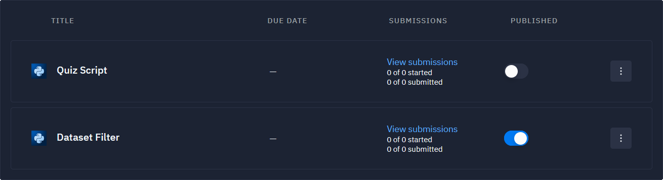 Published flag is used to track assignment that are ready.