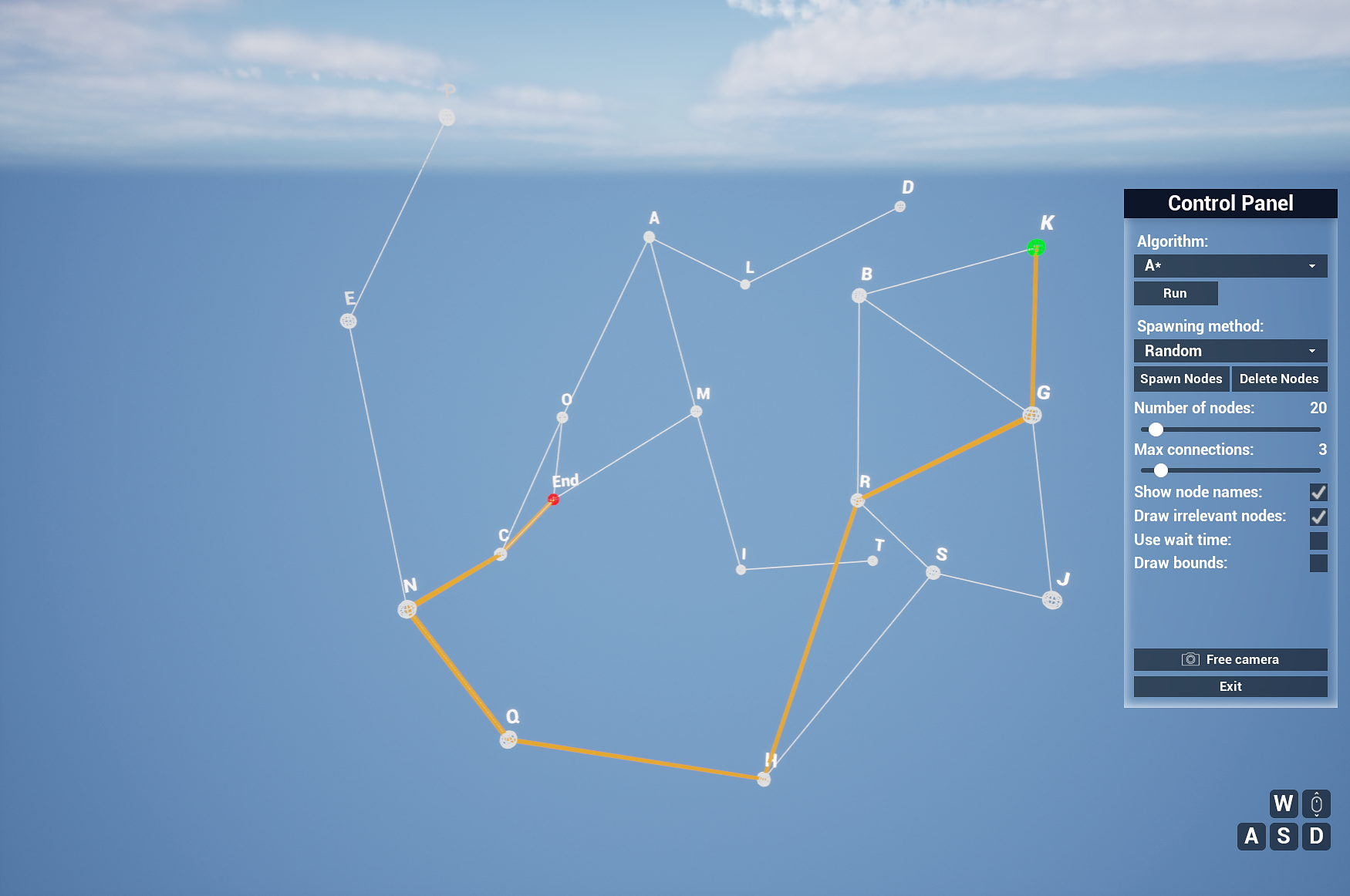 In this project we develop Djikstra's algorithm and A* algorithm as well as the traveling salesman algorithm (not finished) in unreal using C++.