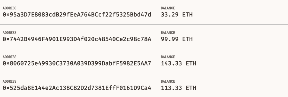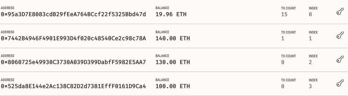 Original Balances shown in Ganache: