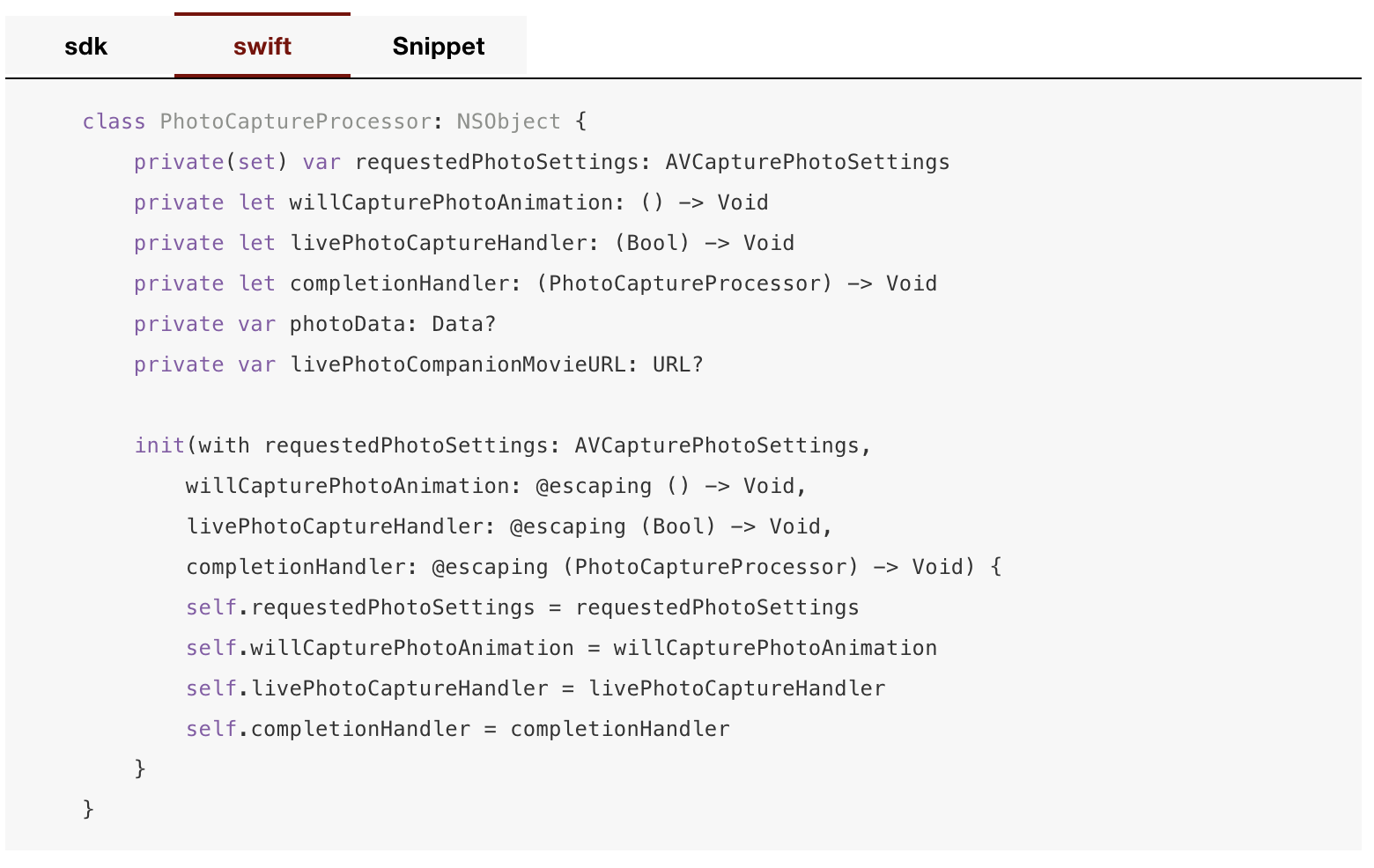 {% codegroup rememberTabs=true, defaultTabName="Snippet" %}