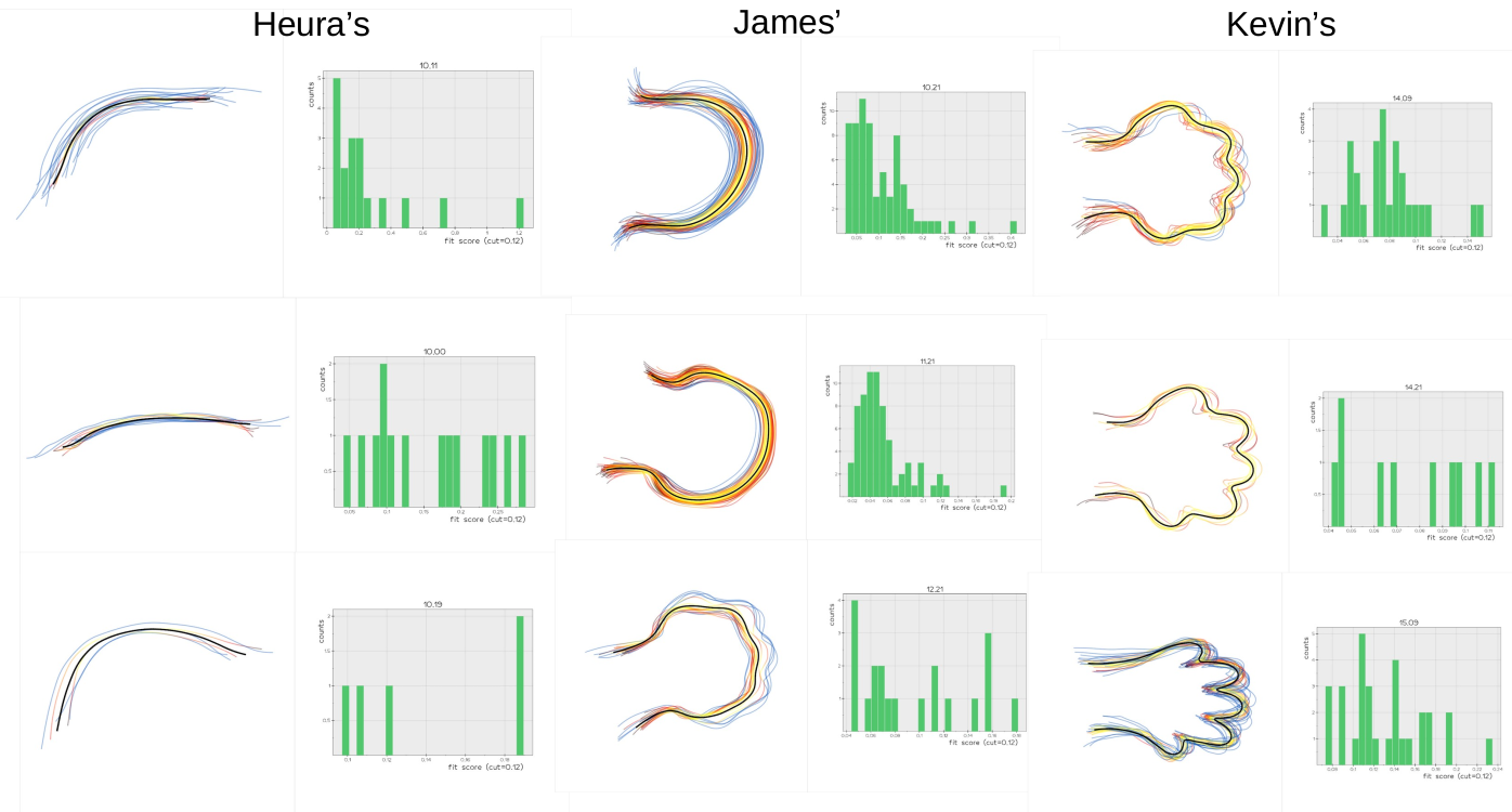 Given an experimental set of 2D lines + time, compute the average shapes for each of the time points and extrapolate the shapes at intermediate time points.