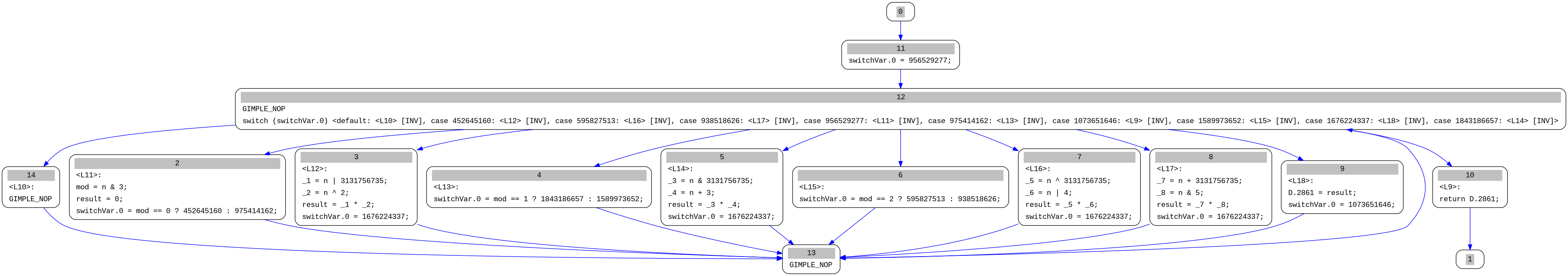 The CFG produced by this function (including GIMPLE IR) is as follows: