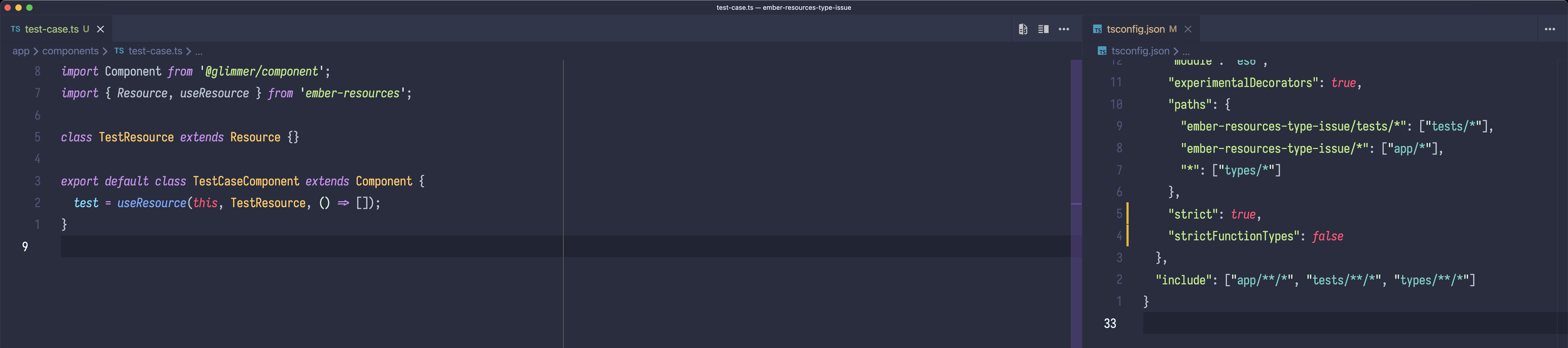strictFunctionTypes: true will causes a type error when using ember-resources: