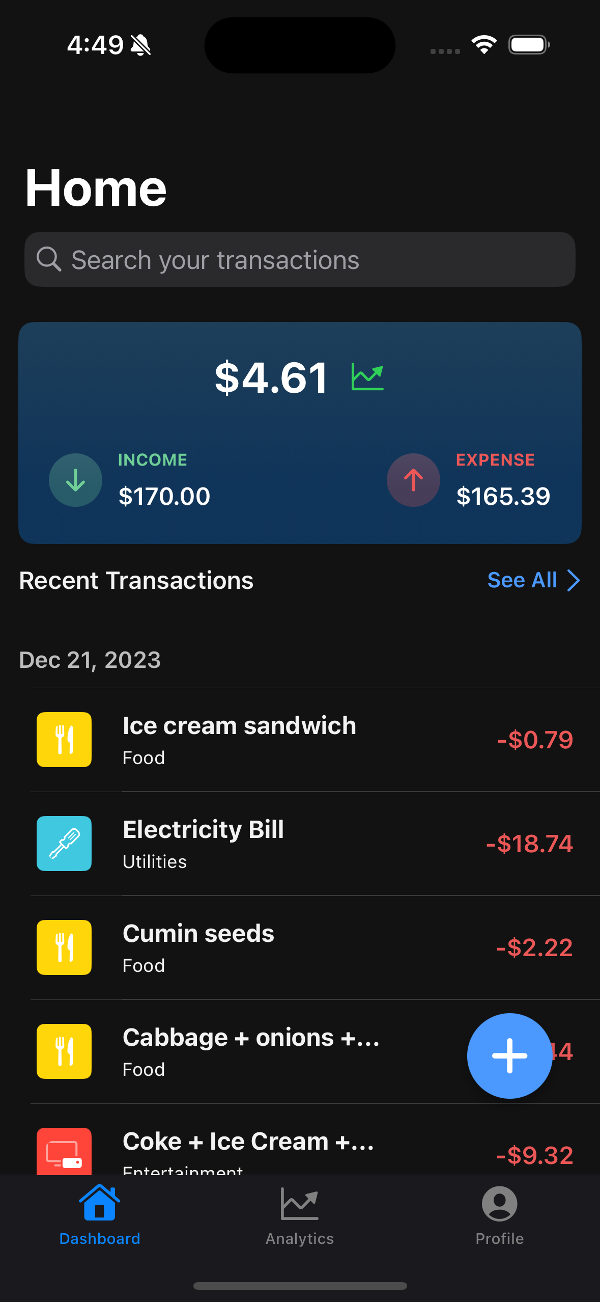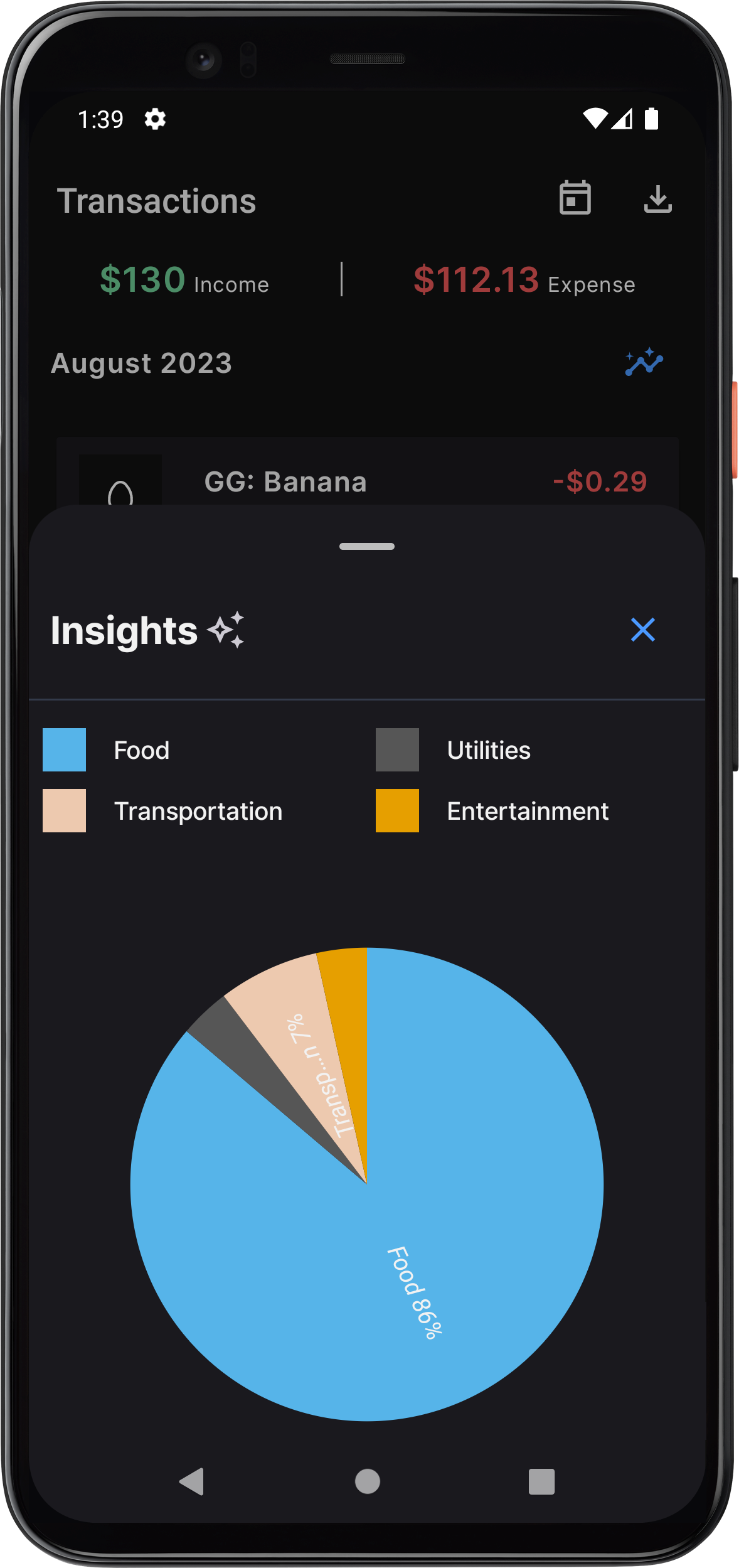- [PIE CHART ANALYTICS] The app provides a visual representation of spending habits through a pie chart, allowing users to see where they are spending the most.