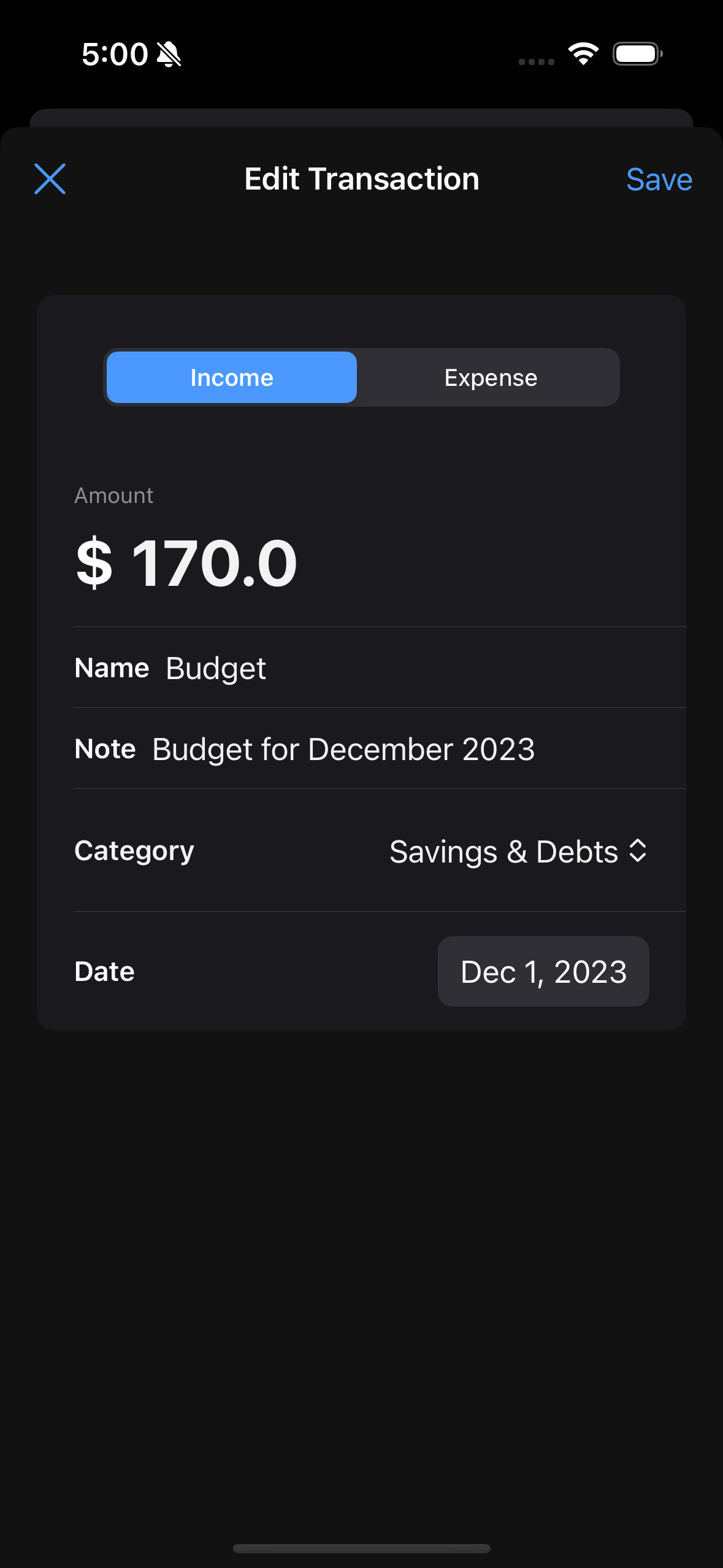 - [DOWNLOAD STATEMENTS] Users can generate and download statements of their income and expense records within a specified date range, making it easy to review and analyze their financial data.