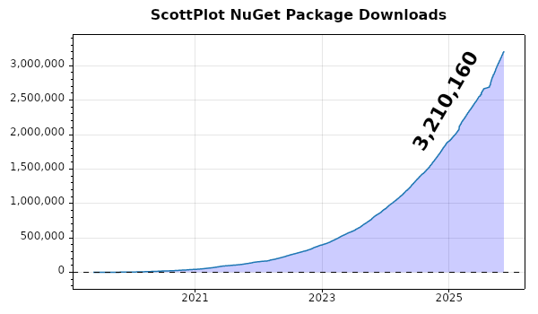 This Azure Functions project logs and plots ScottPlot NuGet package downloads over time. Data is collected using the NuGet API, stored as a CSV in Azure blob storage, plotted using ScottPlot, and served as a static image. Creating charts as web-accessible images allows them to be included in GitHub readme files.